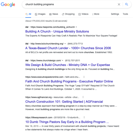 An internet search will quickly show you this is nothing out of the ordinary, though. 179,000,000 hits on Google search show the undying popularity of building more and more church buildings: