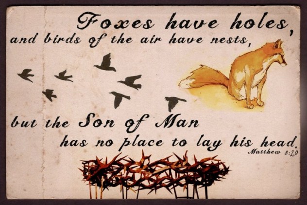 So, Jesus tells this Scribe, this judge and sage, “The foxes have holes and the birds of the air have nests, but the Son of Man has nowhere to lay His head.”