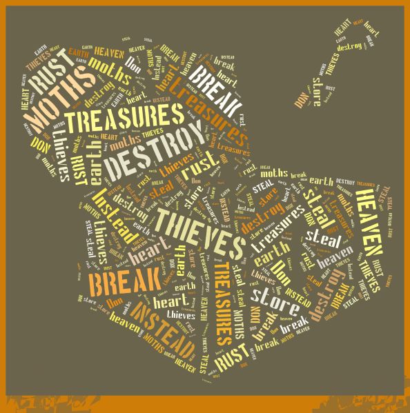 “Do not lay up for yourselves treasures on earth, where moth and rust destroy and where thieves break in and steal, but lay up for yourselves treasures in heaven, where neither moth nor rust destroys and where thieves do not break in and steal. For where your treasure is, there your heart will be also.”