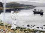 Verse 4. But when the day was now breaking, Jesus stood on the beach; yet the disciples did not know that it was Jesus. Verse 5. So, Jesus said to them, “Children, you do not have any fish to eat, do you?” They answered Him, “No.” Verse 6. And He said to them, “Cast the net on the right-hand side of the boat, and you will find the fish.” So, they cast it, and then they were not able to haul it in because of the great quantity of fish. Verse 7. Therefore, that disciple whom Jesus loved said to Peter, “It is the Lord!” So, when Simon Peter heard that it was the Lord, he put on his outer garment (for he was stripped for work), and threw himself into the sea. Verse 8. But the other disciples came in the little boat, for they were not far from the land, but about one hundred yards away, dragging the net full of fish.