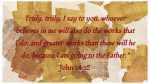 Jesus said, “Truly, truly, I say to you, whoever believes in me will also do the works that I do; and greater works than these will he do, because I am going to the Father.” John 14:12
